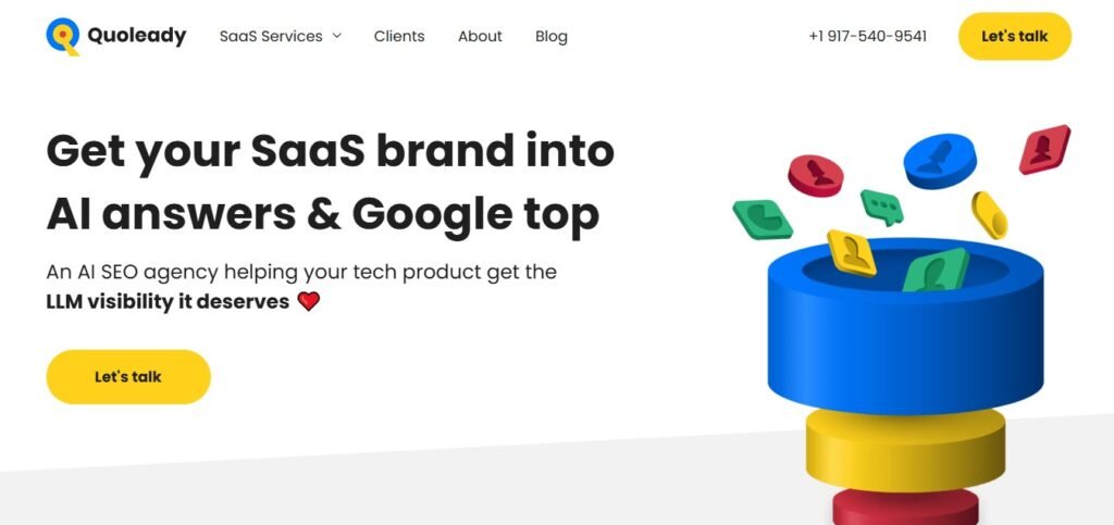 Quoleady is a precision-focused SaaS link building and LLM SEO agency with over 10 years of exclusive B2B SaaS expertise. Their unique edge lies in optimizing content not just for search engines but also for AI models like ChatGPT and Google AI Overviews.